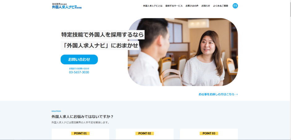 ダイブは、宿泊業界に特化した人材紹介サービスを提供し、全国4,600以上の宿泊施設を支援。(2025年2月調査時点)特定技能を持つ外国人材を全国対応で紹介し、採用から定着までワンストップでサポートします。煩雑な手続きを軽減し、長期的に活躍できる人材の確保を実現するのが強みです。